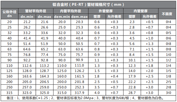 外層鋁合金:外層鋁合金層采用6063航天合金無(wú)縫鋁管,顏色為白色,表面采用高溫噴涂樹(shù)脂材料,使外層鋁管不僅有較強(qiáng)的硬度且提高了鋁合金管耐酸堿、耐腐蝕性能,與建筑墻體顏色一致,永不褪色,永保華麗外觀。內(nèi)層為PE-RT材料。